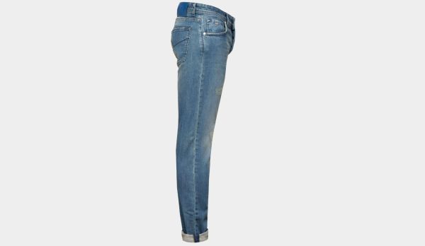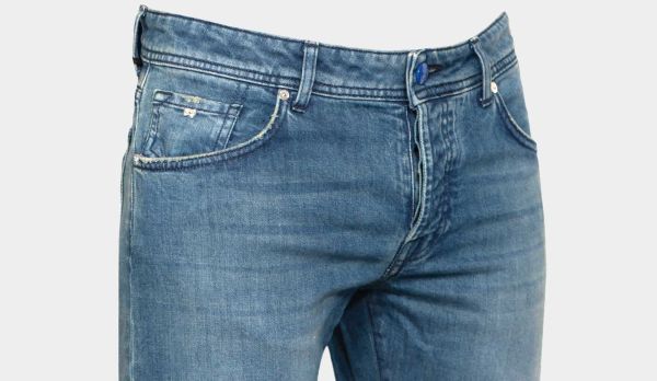 Experience the Marco Pescarolo's Neapolitan slim-fit denim jeans, featuring vintage accents like stone-washed fabric and distressed details. Secured with a button zip closure, showcasing the iconic Pulcinella logo on the coin pocket. Ideal for transitional seasons, effortlessly style with casual sneakers and a cozy sweater or cardigan.