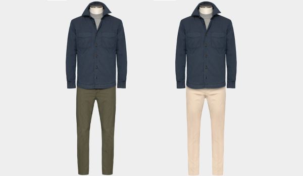 Sports-elegant techno-cotton shirt-jacket with a soft-collar design and two applied chest pockets. Versatile and stylish, it can be worn buttoned up as a standalone shirt or open over a t-shirt or lightweight crewneck for a relaxed, layered look. Pair it effortlessly with blue jeans or light-colored chinos for a casual yet refined outfit. Also available in a green variant.