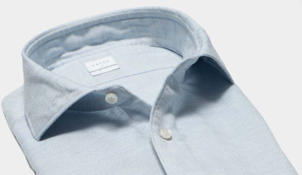 A masterclass in understated elegance, this light blue shirt from Xacus blends the softness of cotton with the natural insulation of wool. The result is an soft and open weave fabric that’s breathable, comfortable, and refined, ideal for year-round wear. Crafted in Italy, the shirt features a subtle textured weave that adds depth due to its fabric blend, creating a sophisticated yet casual appearance. Perfect for smart-casual occasions, it pairs beautifully with tailored trousers or under a lightweight knit. The mother-of-pearl buttons and fine stitching showcase the attention to detail that defines Xacus tailoring. Style Tip: Wear it tucked into light chinos with a suede loafer for a refined off-duty look, or under a soft-shouldered blazer for understated sophistication.